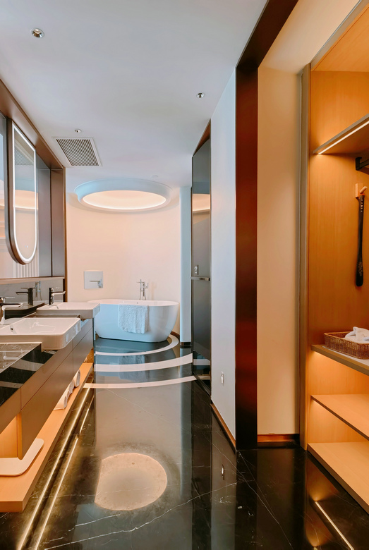 北京王府井紫龙花园酒店的客房卫浴配备德国唯宝马桶、汉斯格雅花洒及法国浪凡洗护 —— 从睡眠到洗漱,每一处细节都兼顾舒适与品质。The bathrooms are exquisitely appointed with Villeroy & Boch toilets, Hansgrohe showers, and Lanvin amenities.